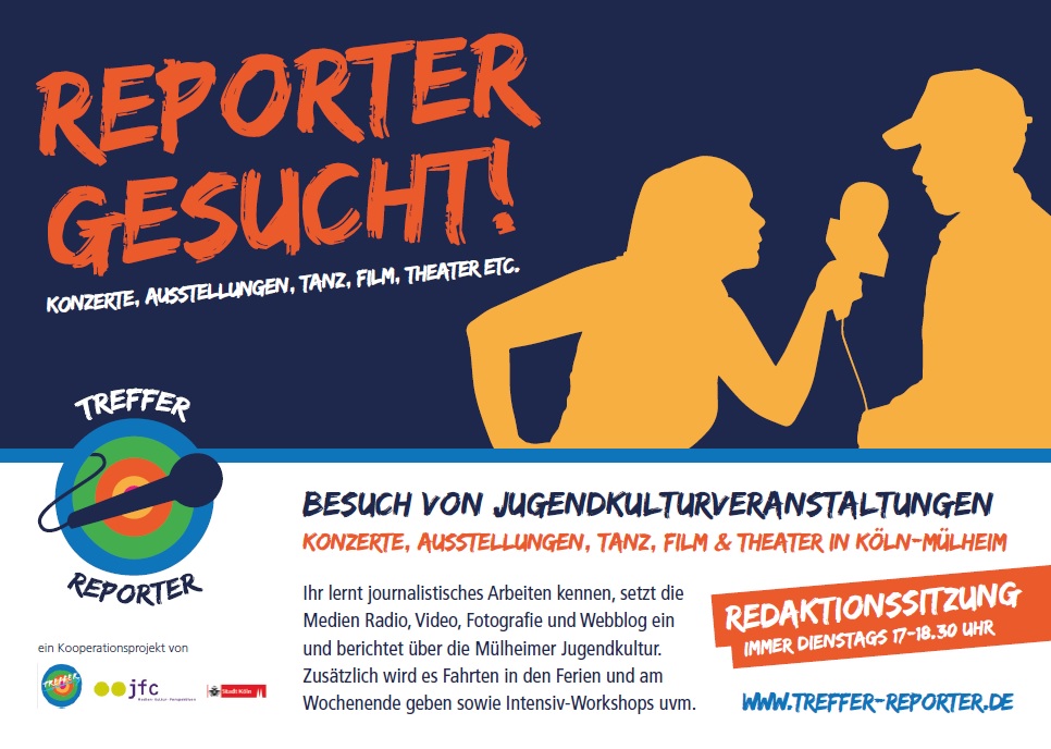 Die TREFFER-Reporter sind ein Kooperationsprojekt des jfc Medienzentrum, der Nelson-Mandela-Schule und des Jugendhauses TREFFER. Unter dem Namen ‚Kulturkenner Mülheim‘ ist in 2013 eine wöchentliche Redaktionsgruppe an den Start gegangen, die durch viele Aktionen, begegnungen und Besuche, ihren Stadtbezirk erkunden. Mithilfe der Medien ‚Radio‘, ‚Video‘, ‚Foto‘ sowie ‚Reportage‘ entstehen dabei tolle Beiträge und Berichte über das bunte Mülheim, die dortige Jugendkulturszene. Ergebnisse der TREFFER-Reporter werden auf der Seite www.treffer-reporter.de präsentiert.